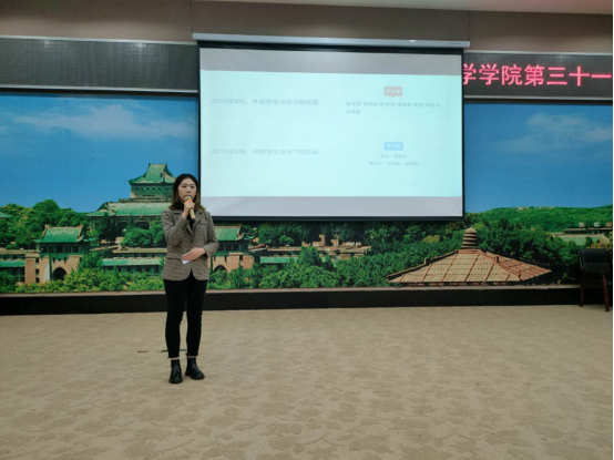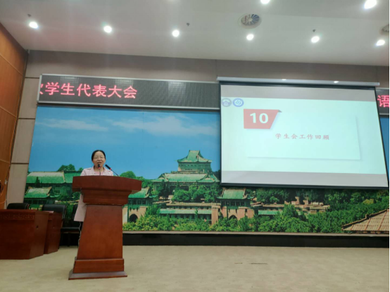 在监计票工作于1033教室紧张开展时,党委副书记孙燕老师在报告厅对过去一年的学生会工作进行了回顾与总结。