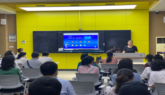 首先,游长松副院长代表学院向老师们致以节日祝贺。随后,游院长介绍了学院举办“信息技术培训会”的目的,强调将信息技术引入外语课堂的必要性和重要性,要求老师们要与时俱进,学习和掌握最新的教学理念和教学手段,用好智慧教室,提升教学质量。