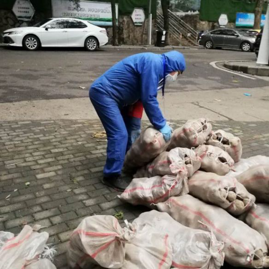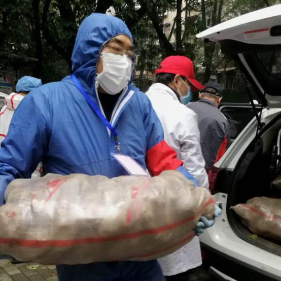 接下来的事情就没什么悬念了,居民们相当给力,也不苛求,虽然眼巴巴地看了一上午萝卜,但听到“只有土豆”时都没有怨言,有序完成了分发。期间,领取到两份期待已久的防护服,由保卫部干事姚琦每日驱车到网格执勤点发放,确保执勤效果和物资的利用。还给一位家住四楼的退休职工送菜上门。另外,我被一位确诊门栋的老人批评:为什么不按门铃通知?我们不接通知不敢下楼,差点没领到土豆!这个建议不错,我赶紧认错并学习。