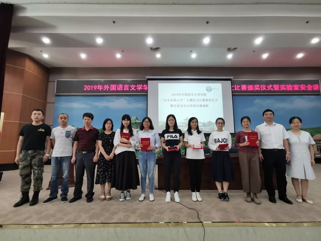 2019年9月26日星期四下午两点,新葡的京集团8814“安全在我心中“主题征文比赛颁奖仪式暨实验室安全讲座实操演练在学院报告厅举行。本次活动由黄媛老师主持,院党委书记黄宏发老师、院党委副书记孙燕老师、学院副院长贾玉敏老师、辅导员刘迪老师、辅导员刘铮老师、实验中心温建科主任、学校保卫部何平老师及消防安全主讲人吴聪教官出席了会议。